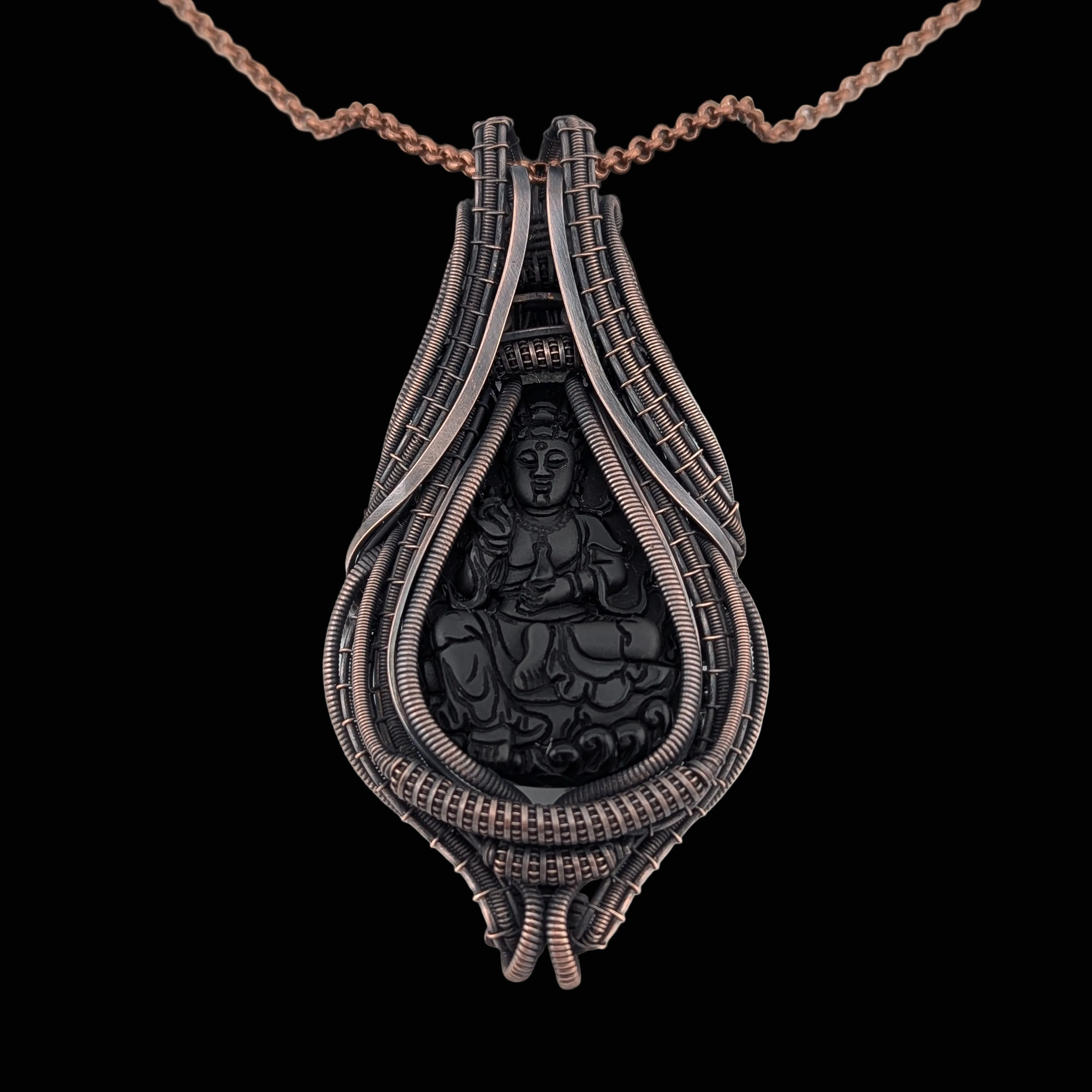 "Guru" - Onyx Engraved Buddha Copper Pendant