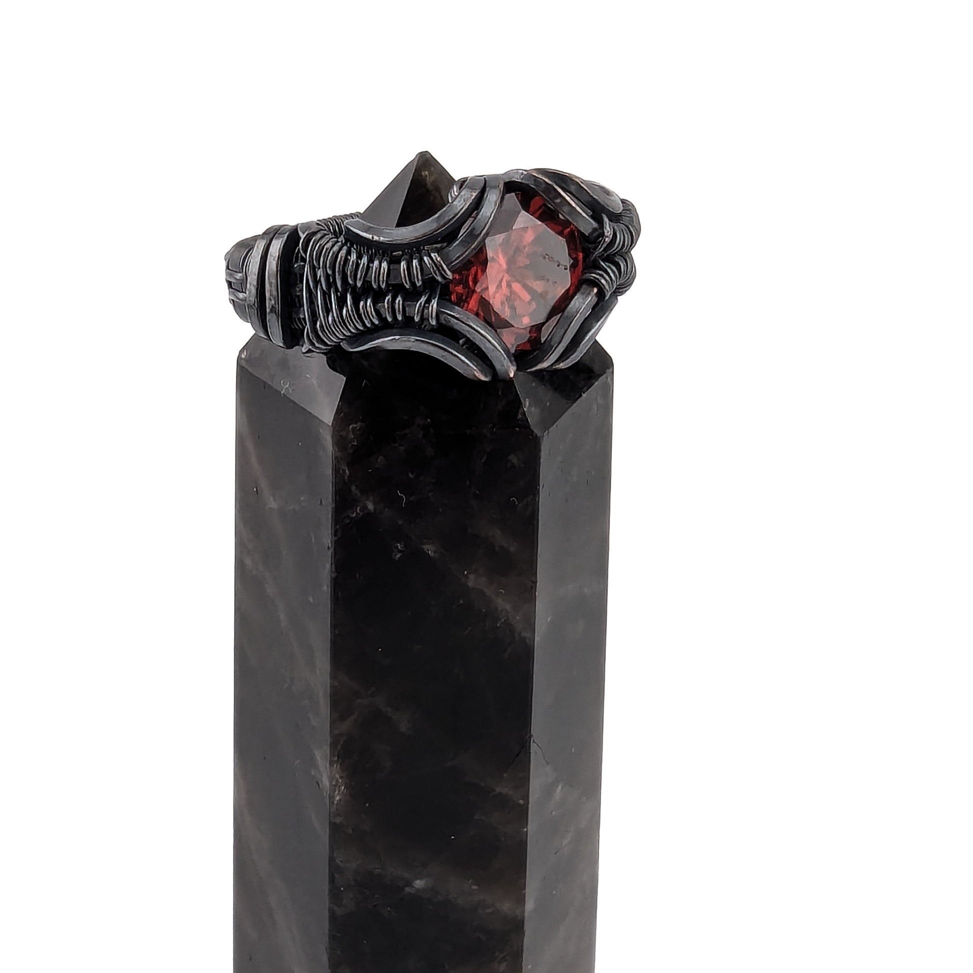 Blood Orange CZ Ring - Copper Wire Wrapped Brilliant Light Design - Size 8