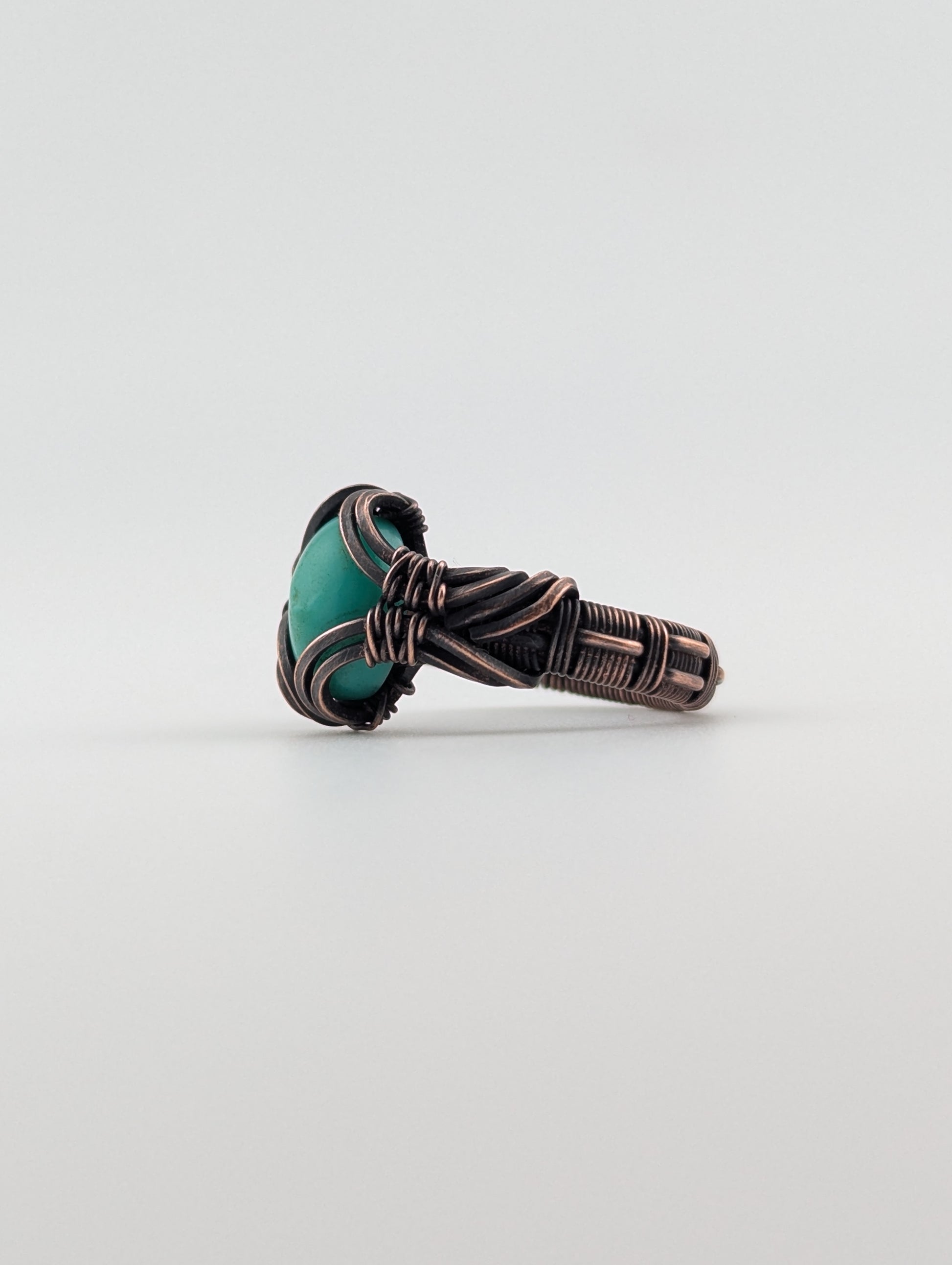 Chrysoprase - Copper Wire Wrapped Ring - Size 5.5