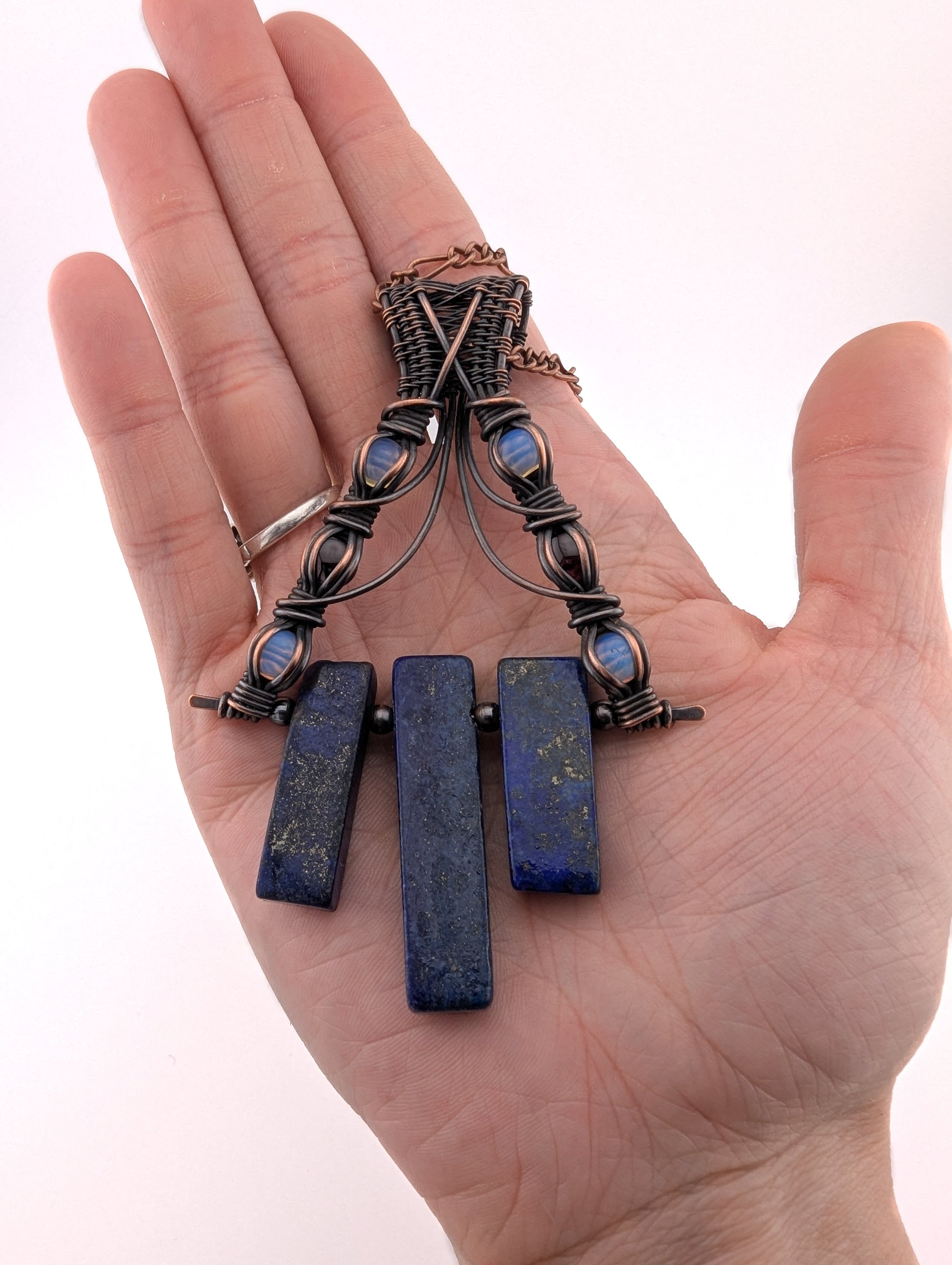 "Glory Days" - Lapis Lazuli, Garnet, Opalite Copper Pendant